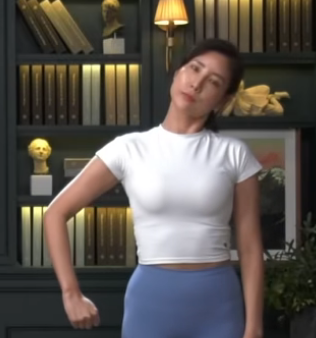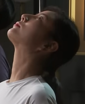 턱을 쇄골에 댓다가 위로 턱을 올리고 머리를 옆으로 돌리면서 턱을어꺠에 대준다